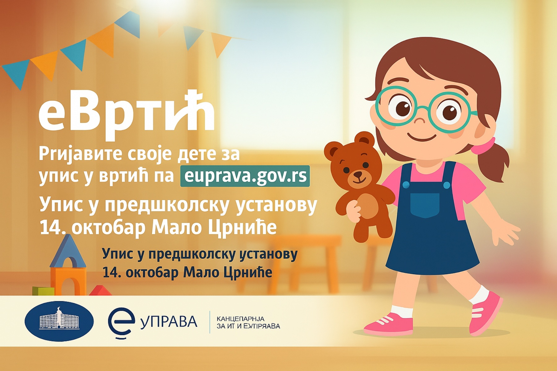 ОБАВЕШТЕЊЕ- УПИС У ПРЕДШКОЛСКУ УСТАНОВУ 2026/2027 ГОД.